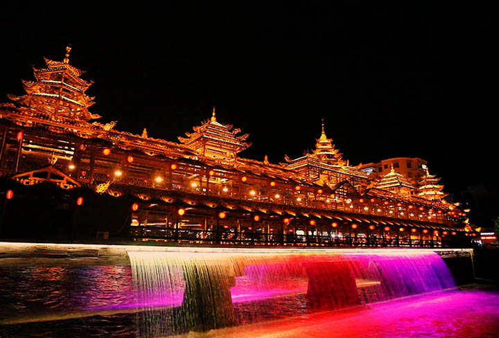恩施宣恩土家族風雨橋瀑布水景